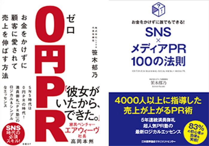 2019年12月、日経BP社より「0円PR」、 2021年7月、日本能率協会マネジメントセンターより「SNS×メディアPR100の法則」好評発売中